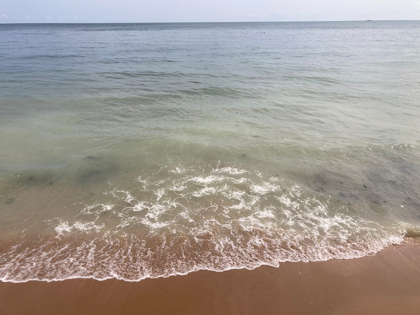 I find a space on the sand and peel my layers off. There are people everywhere, lying and tanning, splashing in the shallows, even a few swim capped heads further out. The water is turquoise and cobalt, but misty; the legacy of the chalk, of the churned up sands and this final burst of summer. I wade in, through the throng. There are more bodies in the water than normal, but the ocean is big enough to lose myself in.
